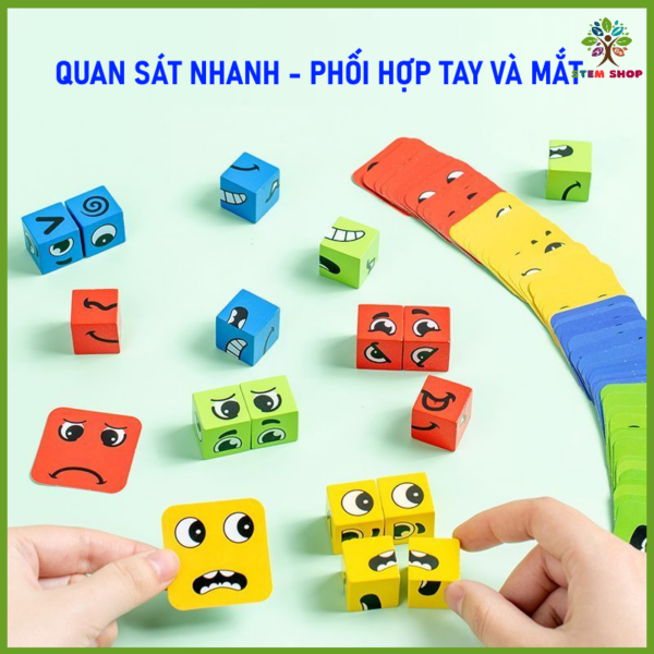 Sản phẩm là bộ gồm các cấu kiện gỗ, nhiều hình dạng, được sơn màu 6 mặt để lắp ghép thành các biểu tượng khuôn mặt vơi cảm xúc khác nhau. Người chơi theo hình của thẻ bài cảm xúc sẽ nhanh chóng lắp ghép các quân hình bằng gỗ để được hình giống với thẻ bài.