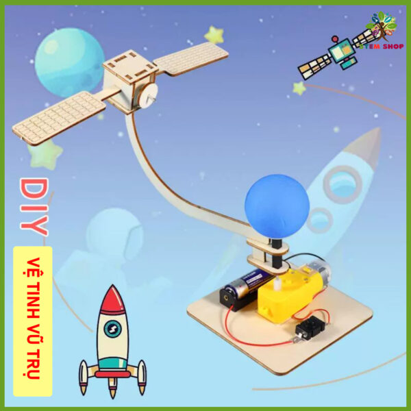 [STEM Vũ trụ] Mô hình stem Vệ Tinh Quay Quanh Trái Đất. Bộ đồ chơi lắp ráp gỗ diy khoa học kỹ thuật